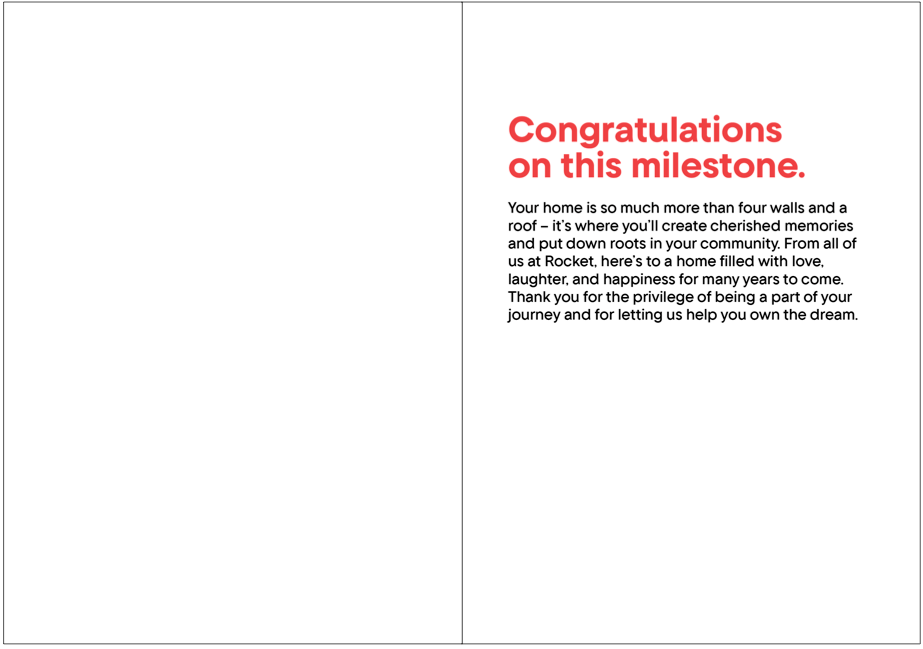 and my favorite project: a greeting card sent out to people who have just purchased a home with rocket mortgage. i don’t often get to work on tangible items, which made this all the more special.